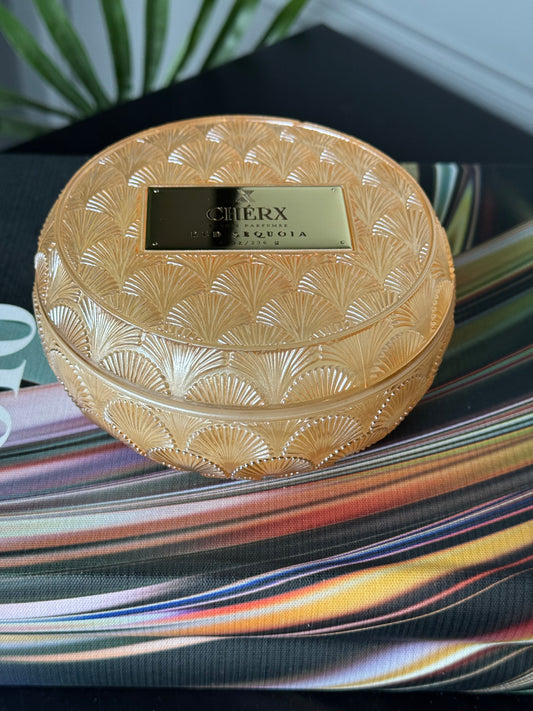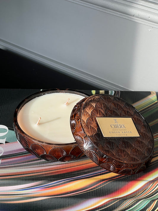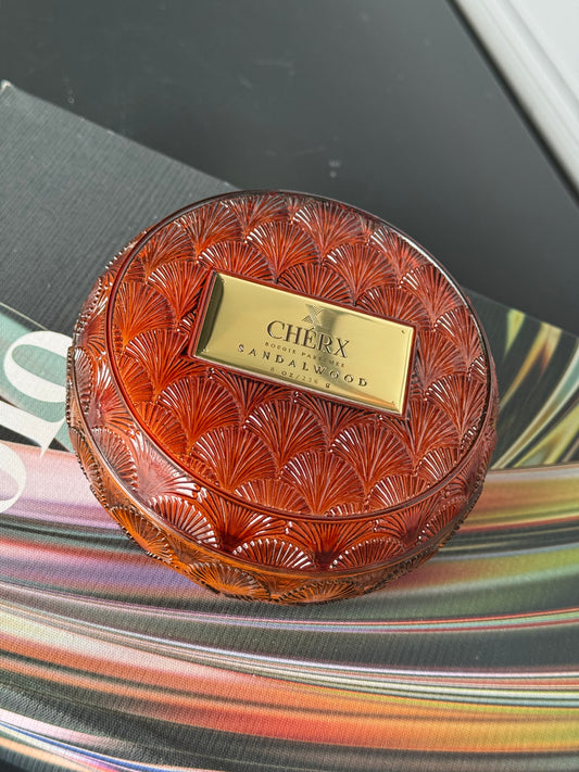 Kokulu Cherx Kabartmalı Cam Kase Mum Sandal Wood- Amber