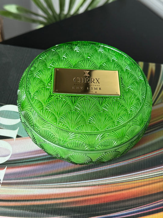 Kokulu Cherx Kabartmalı Cam Kase Mum Key Lime Yeşil