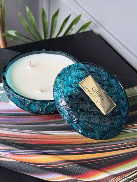 Kokulu Cherx Kabartmalı Cam Kase Mum Majestic Night - Mavi