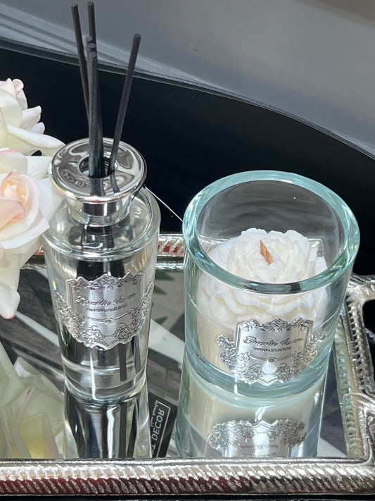 Kokulu Cam Mum Beyaz Gümüş Prinç Logolu 800 gr