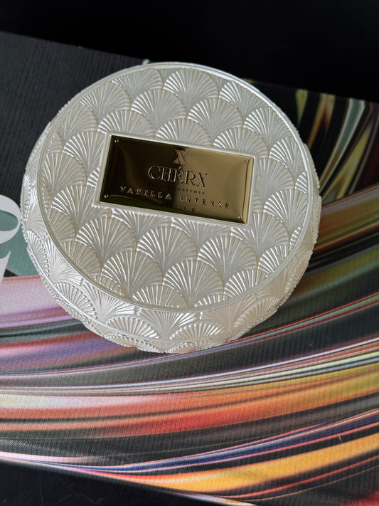 Kokulu Cherx Kabartmalı Cam Kase Mum Vanilla İntense - İnci Beyazı