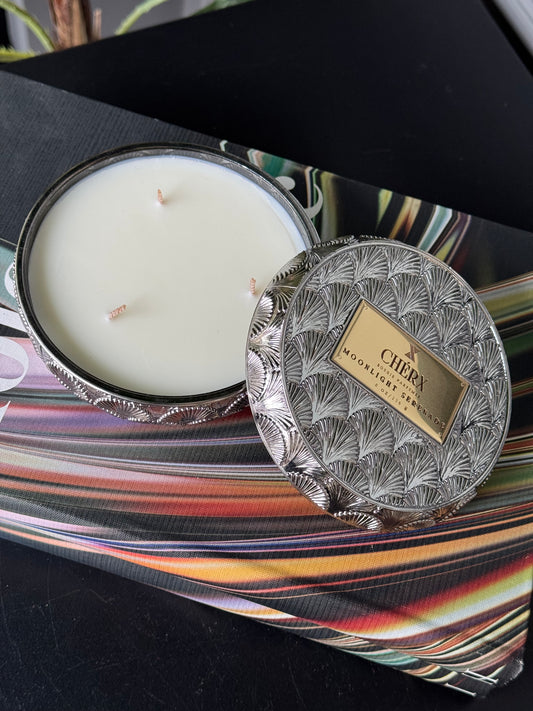 Kokulu Cherx Kabartmalı Cam Kase Mum Moonlight Serenade - Gümüş