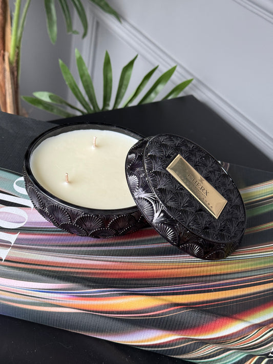 Kokulu Cherx Kabartmalı Cam Kase Mum Seductive Aura - Siyah