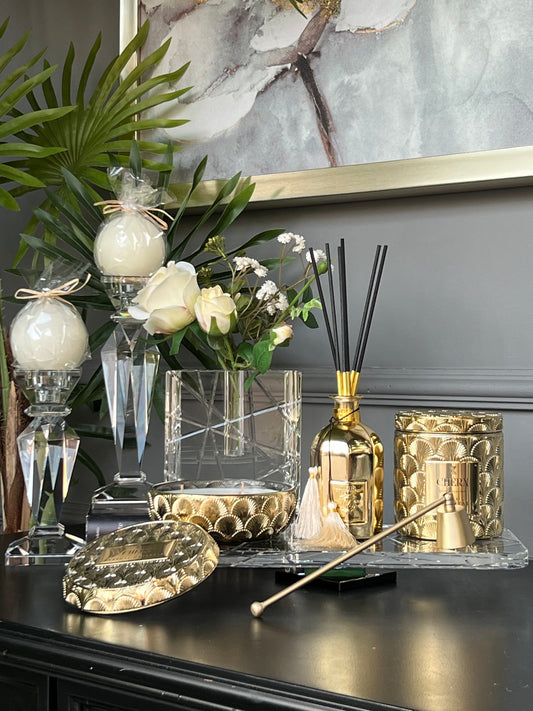 Kokulu Cherx Kabartmalı Cam Kase Mum Anatoli Oriental - Gold