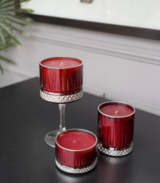Kokulu Cam Mum Bordo Gümüş 3lü